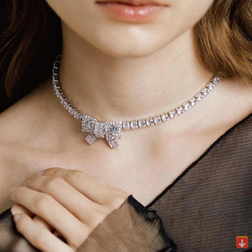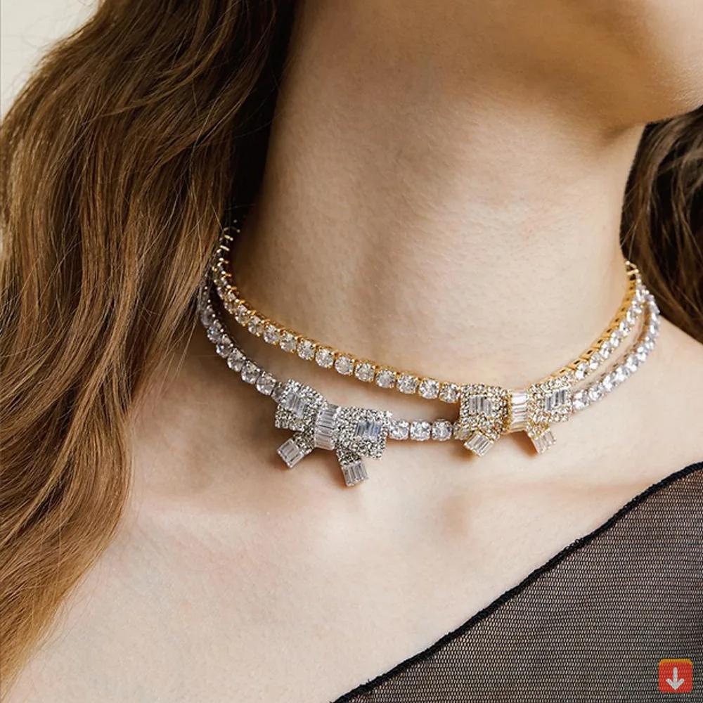 عقد قصير للنساء عالية الجودة مربع تشيكوسلوفاكيا الزركون قطعة واحدة